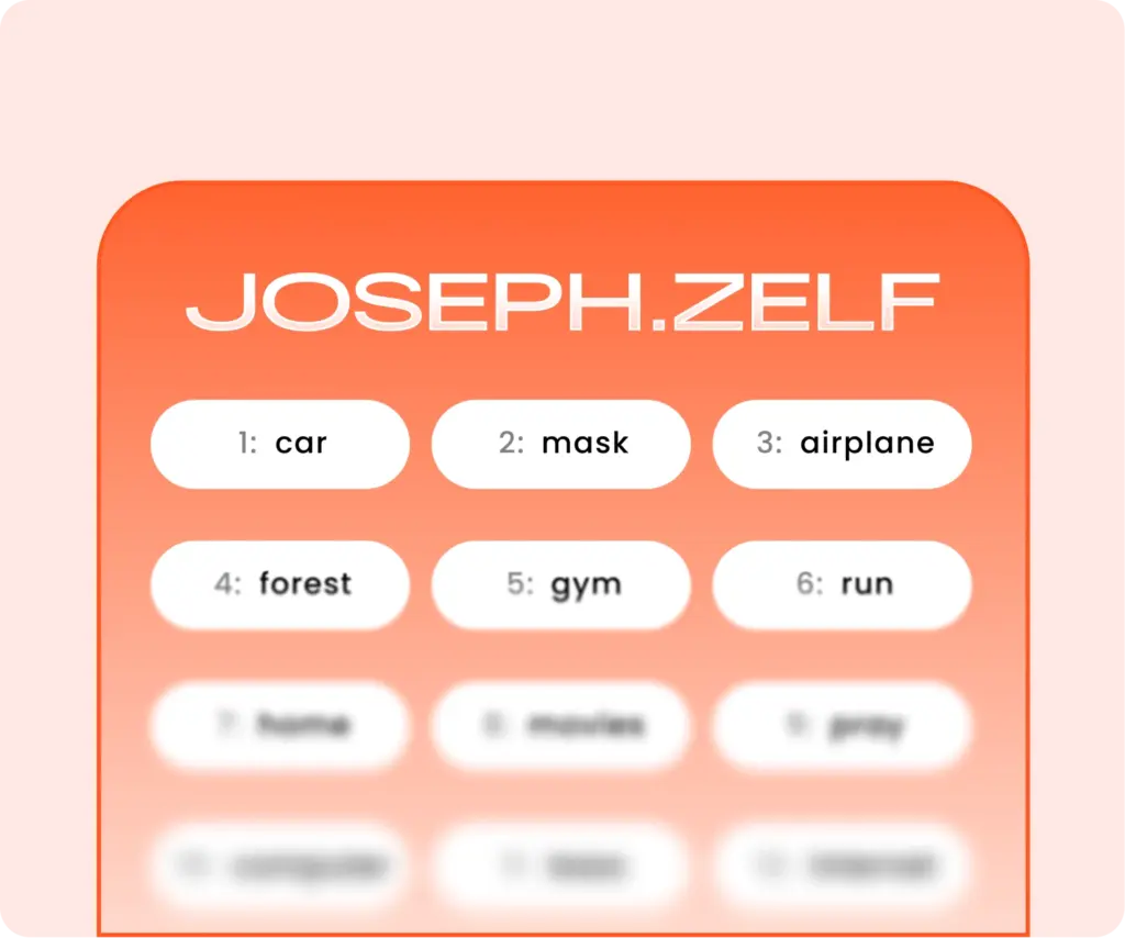 Each ZelfProof is securely stored in the blockchain or IPFS. Once a Zelf Name is query, the user will be prompted to decrypt it with their face and additional layer of security (password or pin). Once decrypted, the user gets access to the account. This ensures that identity verification is consistent without compromising security or privacy.