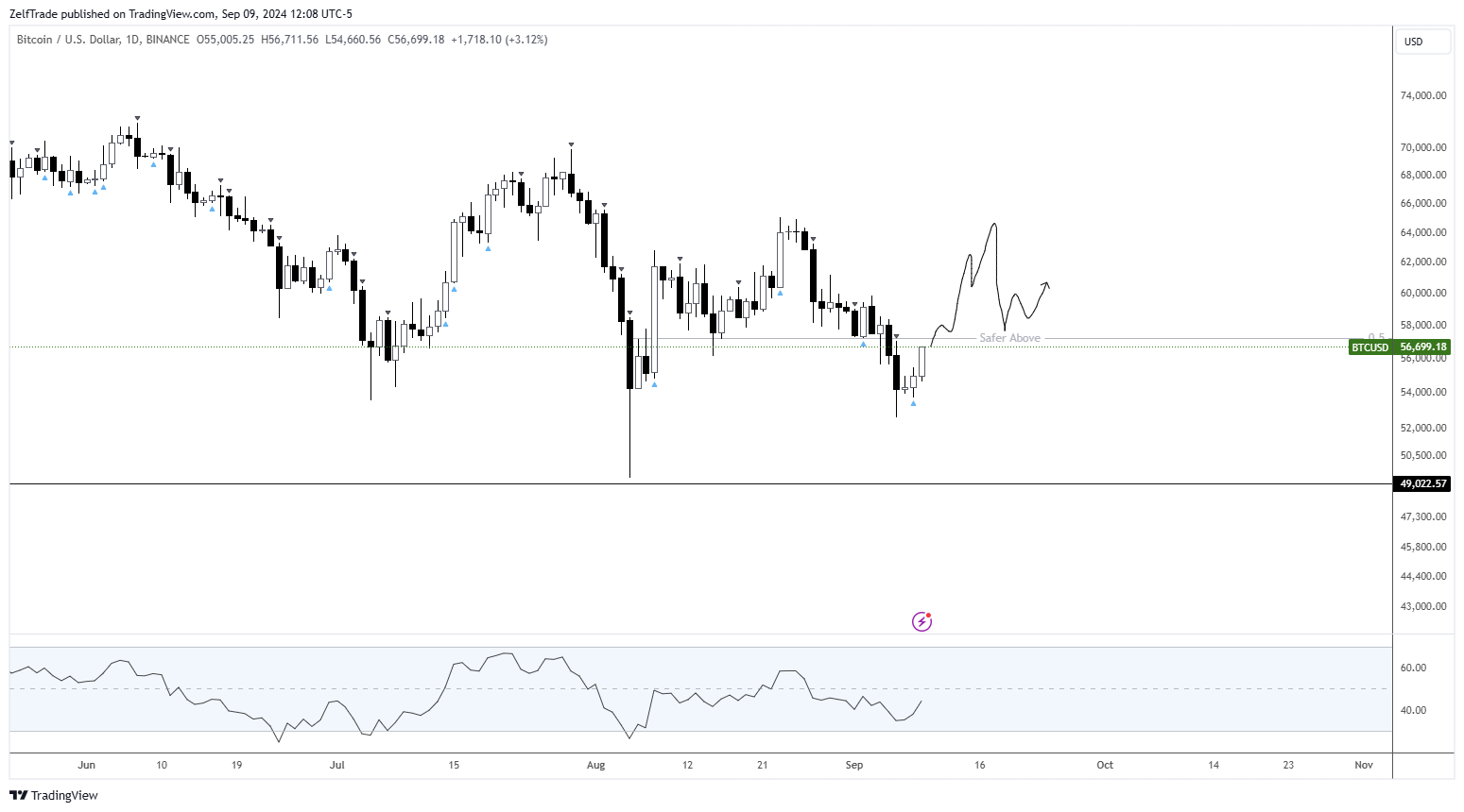- Support Level: If this $53.5k level turns out to be the low, it aligns perfectly with a retest of the August wick. This level represents a strong buying opportunity while still maintaining a bullish bias.