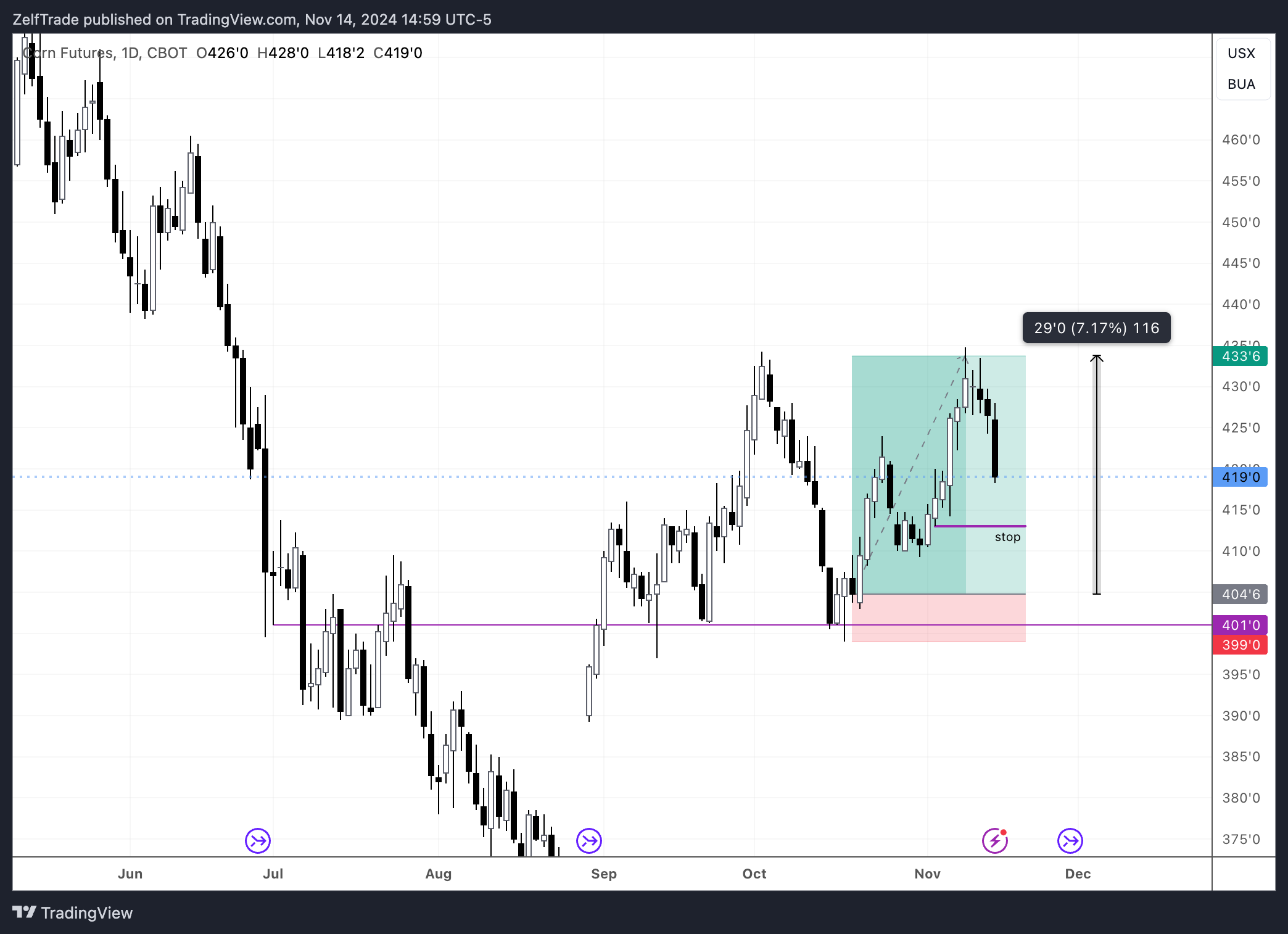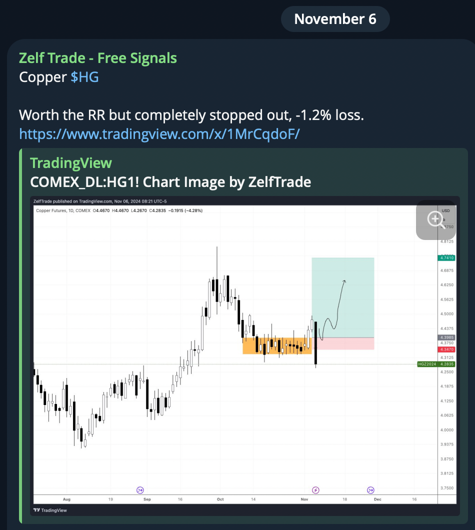 Copper $HG Bullish break about to confirm on today’s daily close. Ideal entry at around $4.4 although a market buy is also looking well. Stop placed at today’s daily low. Gold $XAU From a macro perspective, October’s monthly chart, closed quite well showing signs of trend continuation to the