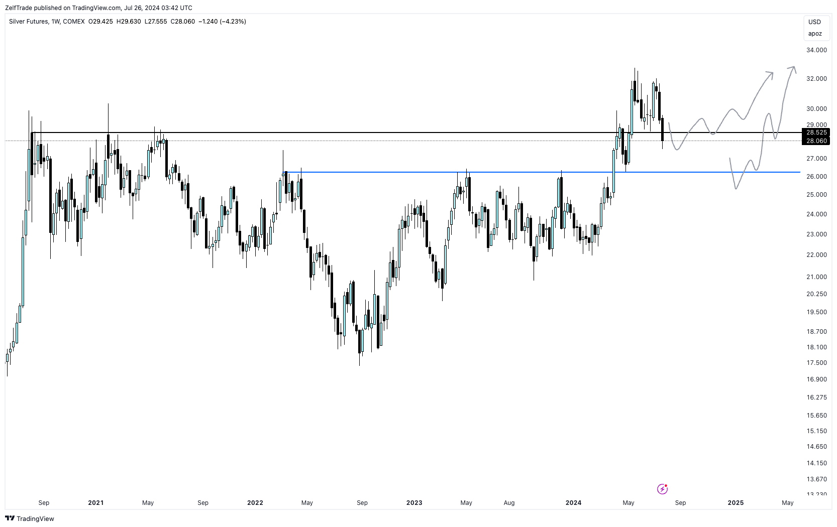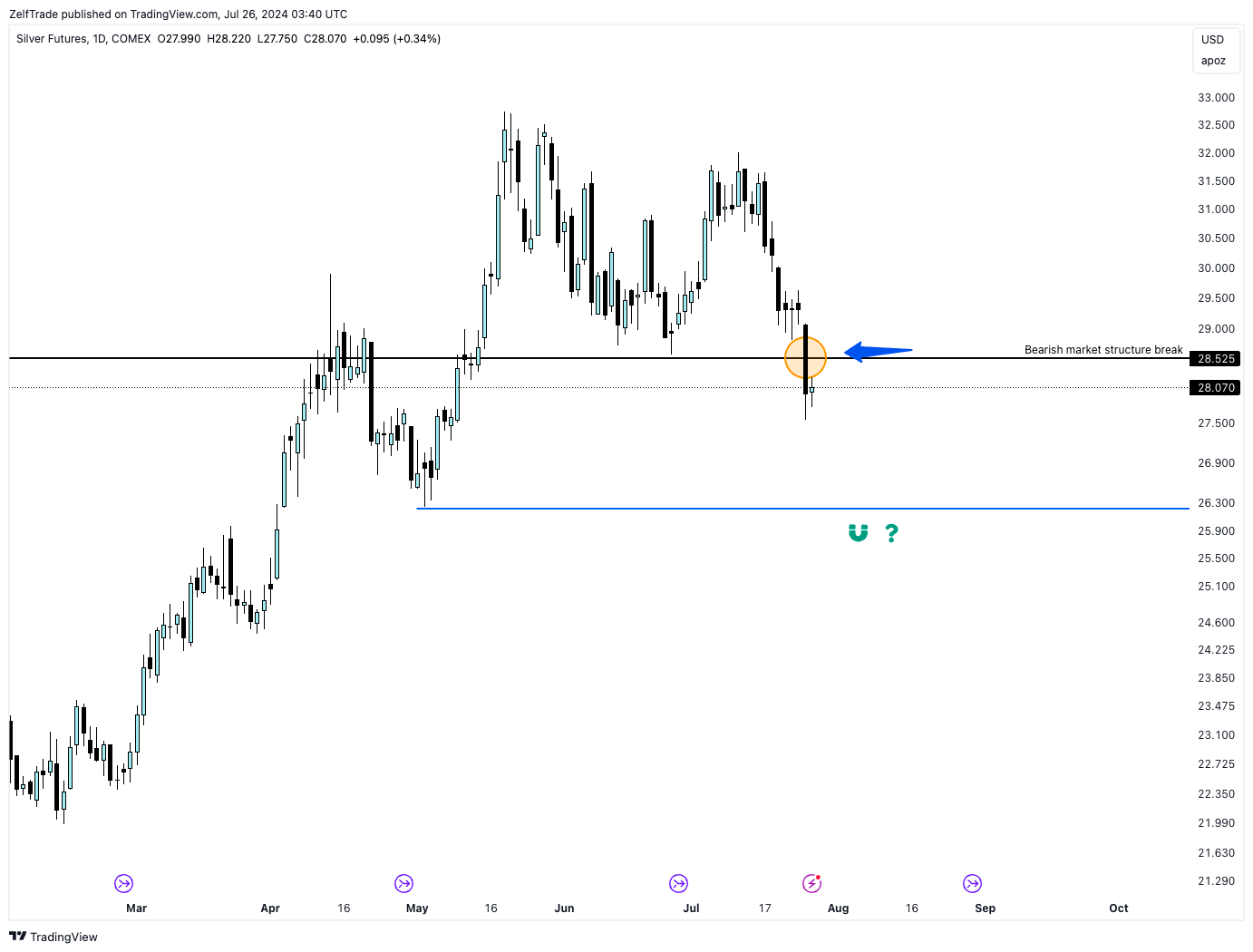 - Price broke above previous highs and by the hand with gold, silver has now retraced back below previous highs... NO BUENO.