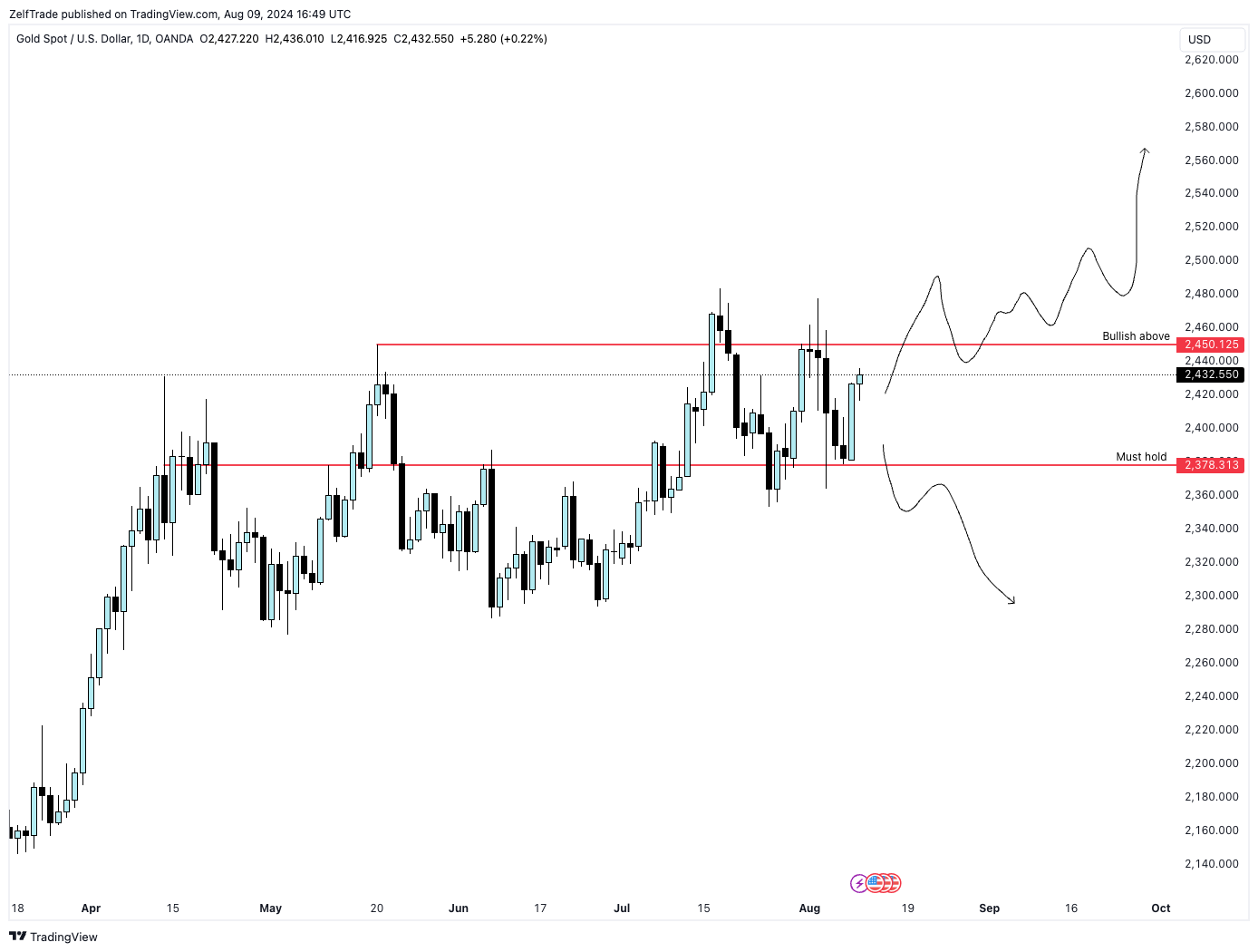 July’s monthly close Gold (XAU) Perfect monthly close with a bullish expansive bar closing above previous all time high signaling bullish strength. https://www.tradingview.com/x/ROyhzkRU/ On our last weekly update we posted this setup long on $2,360 and we had a nice 4% long swing from