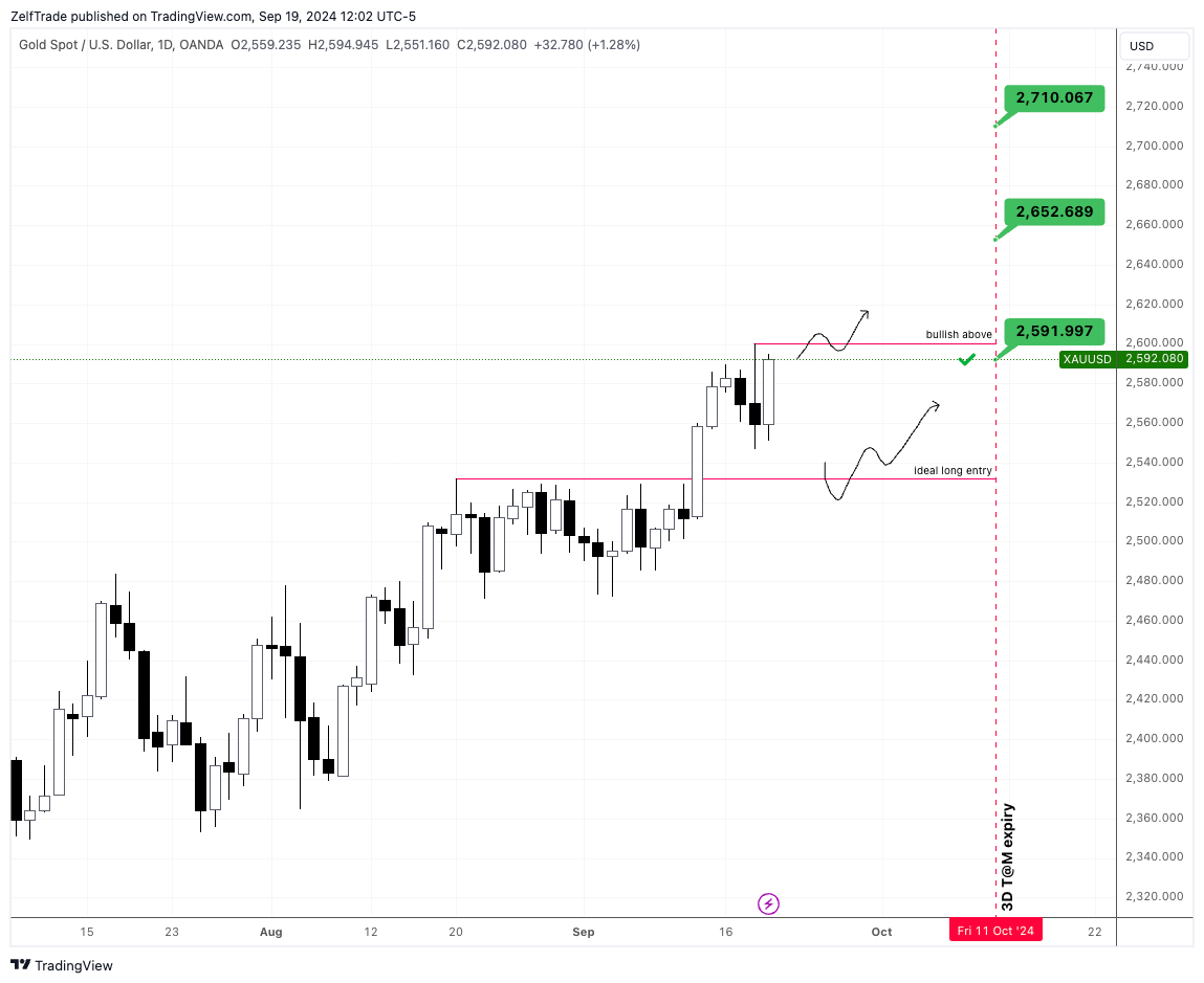 Bullish upon a strong close above $2,600.