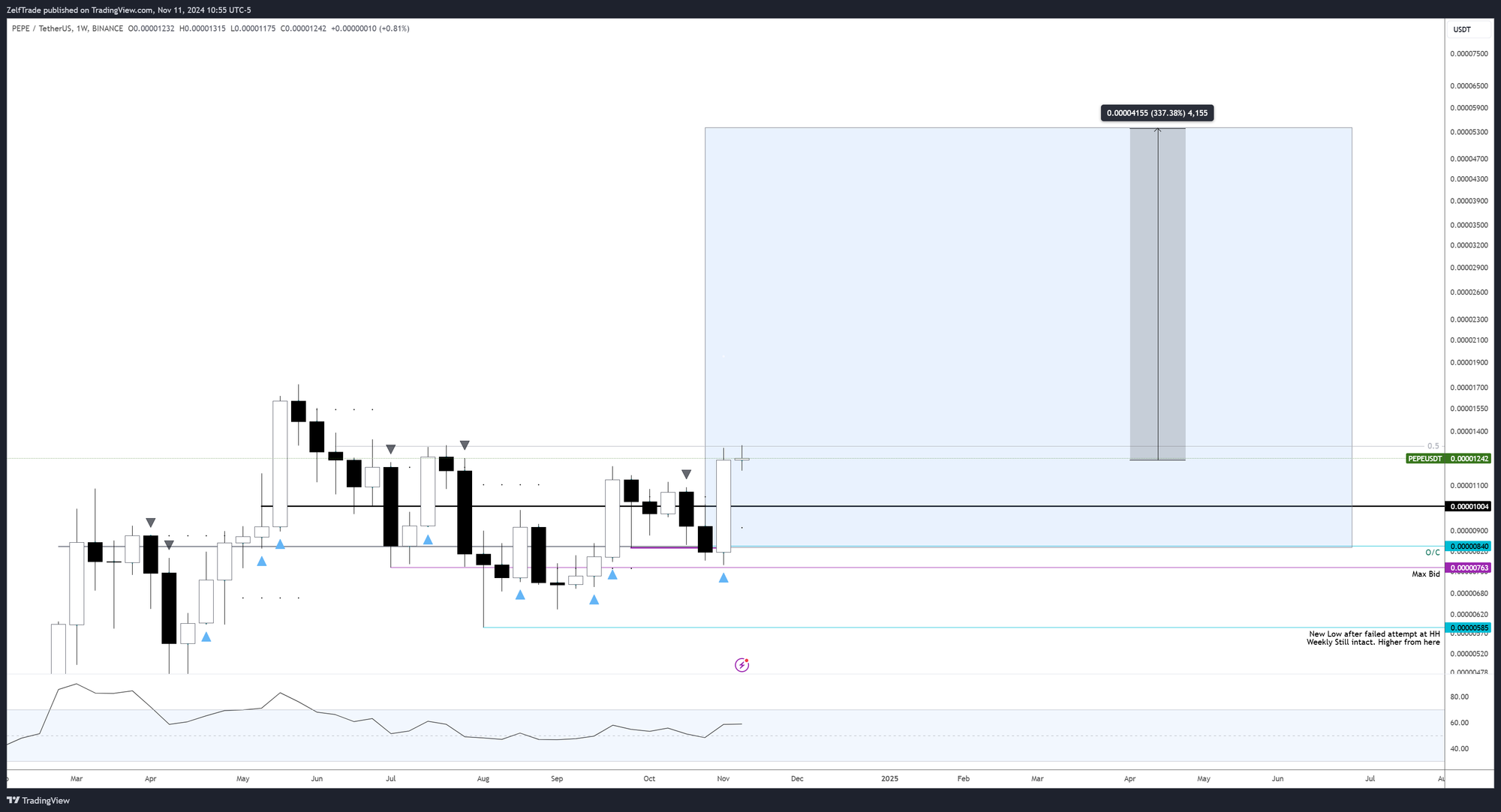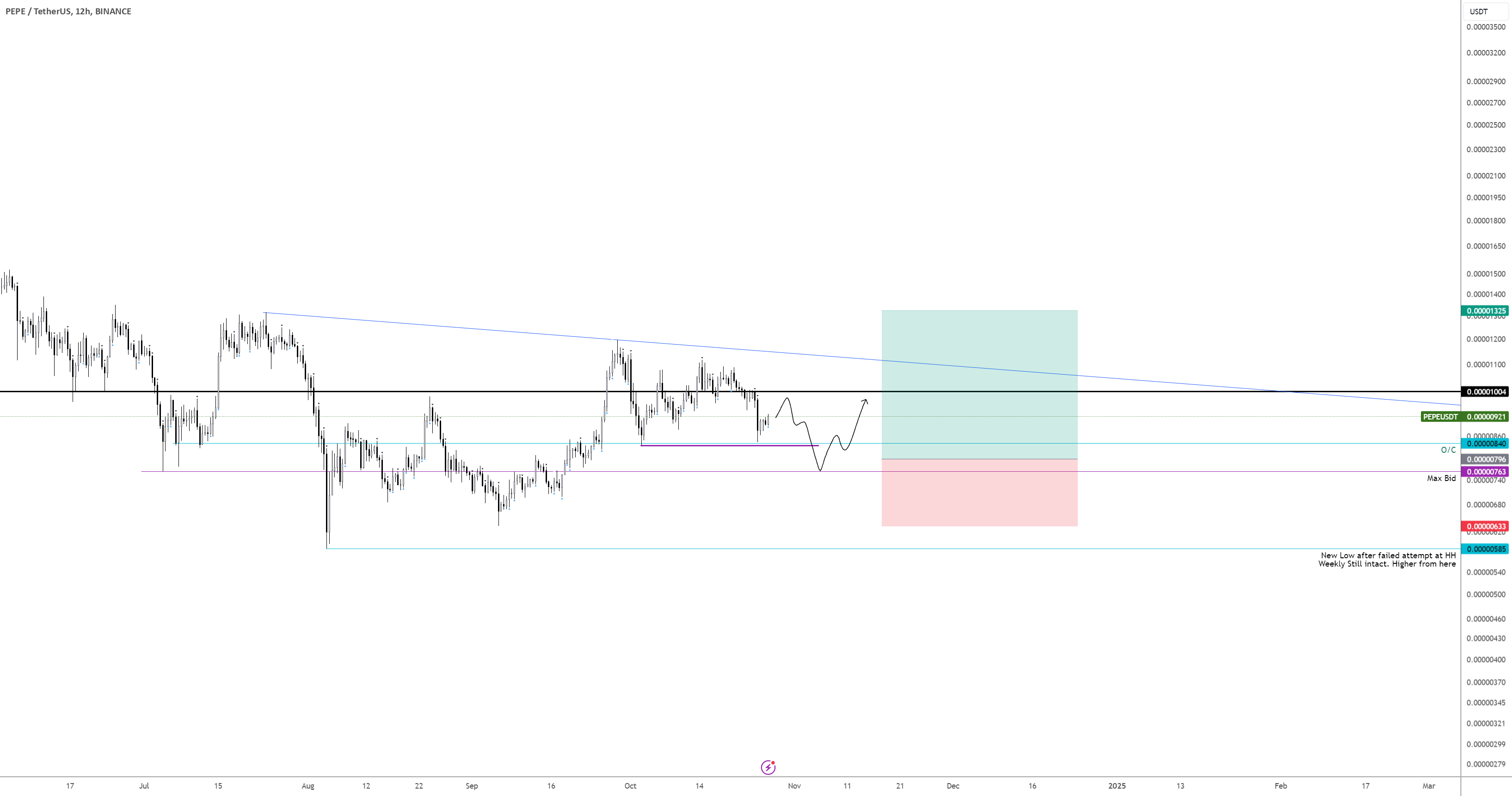 - The monthly chart is looking great, and any buys closer to 0.000011 are worth adding.