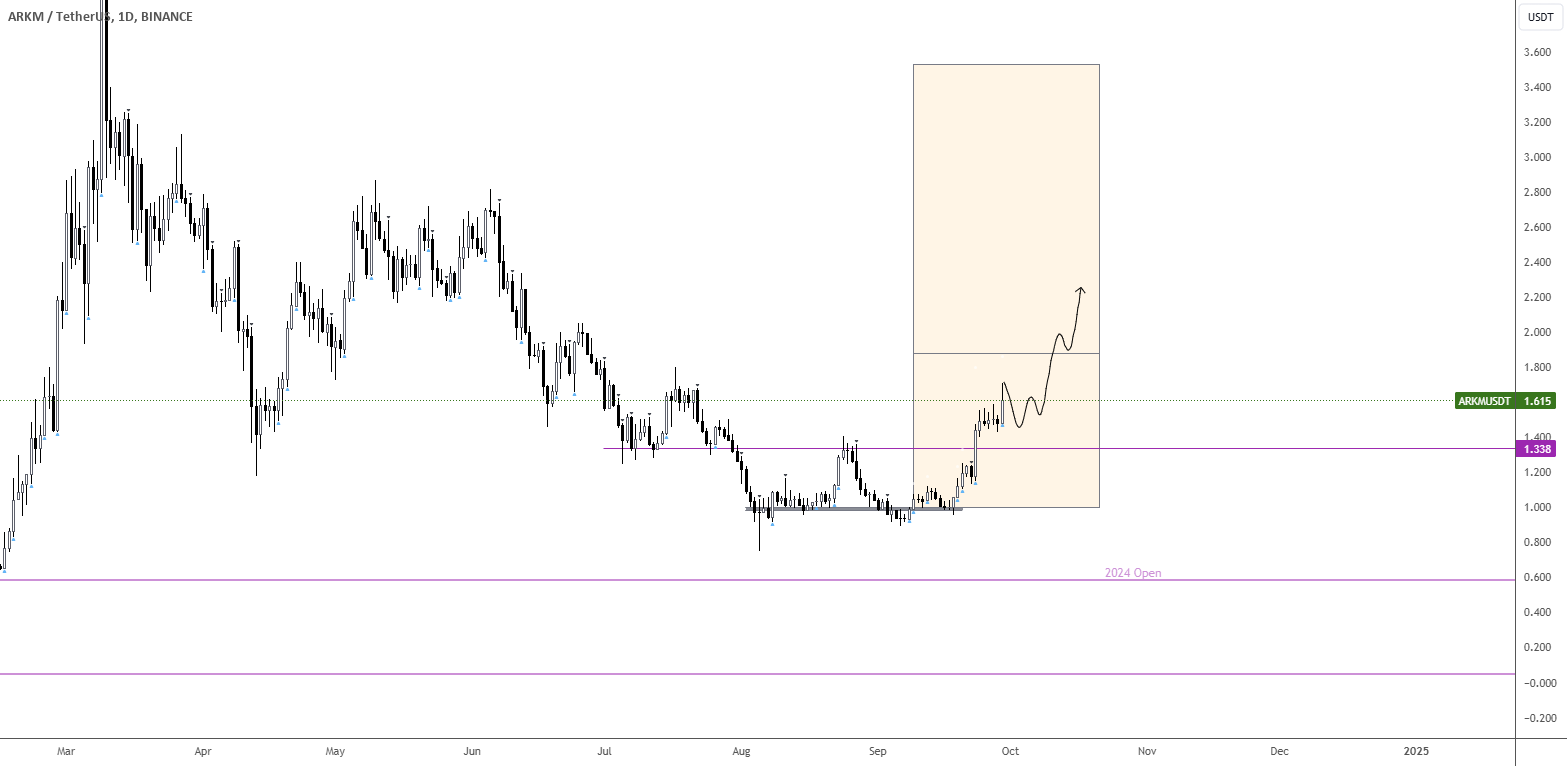 I regret overlooking $ARKM, especially after it just fired a massive bullish signal on the monthly chart. This asset has all the indicators pointing toward a potential return to all-time highs. From the chart analysis, a retrace to $1.33 would be fortunate, as I expect $ARKM to continue its ascent toward the initial target of $1.87. Should a full reversal occur, we could see $3.50 in the near future. For now, let’s focus on riding this momentum. The daily trend is active, but I plan to be …