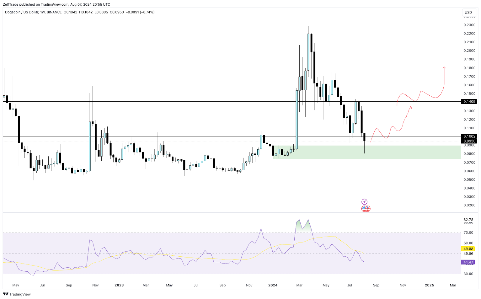We hit our ideal macro long entry of $90 -$80 here, now what? Monthly RSI is just above the 50 which is great. July’s monthly closed with a doji candle indicating possible reversal. Prices must start moving up soon if we want this level to hold.