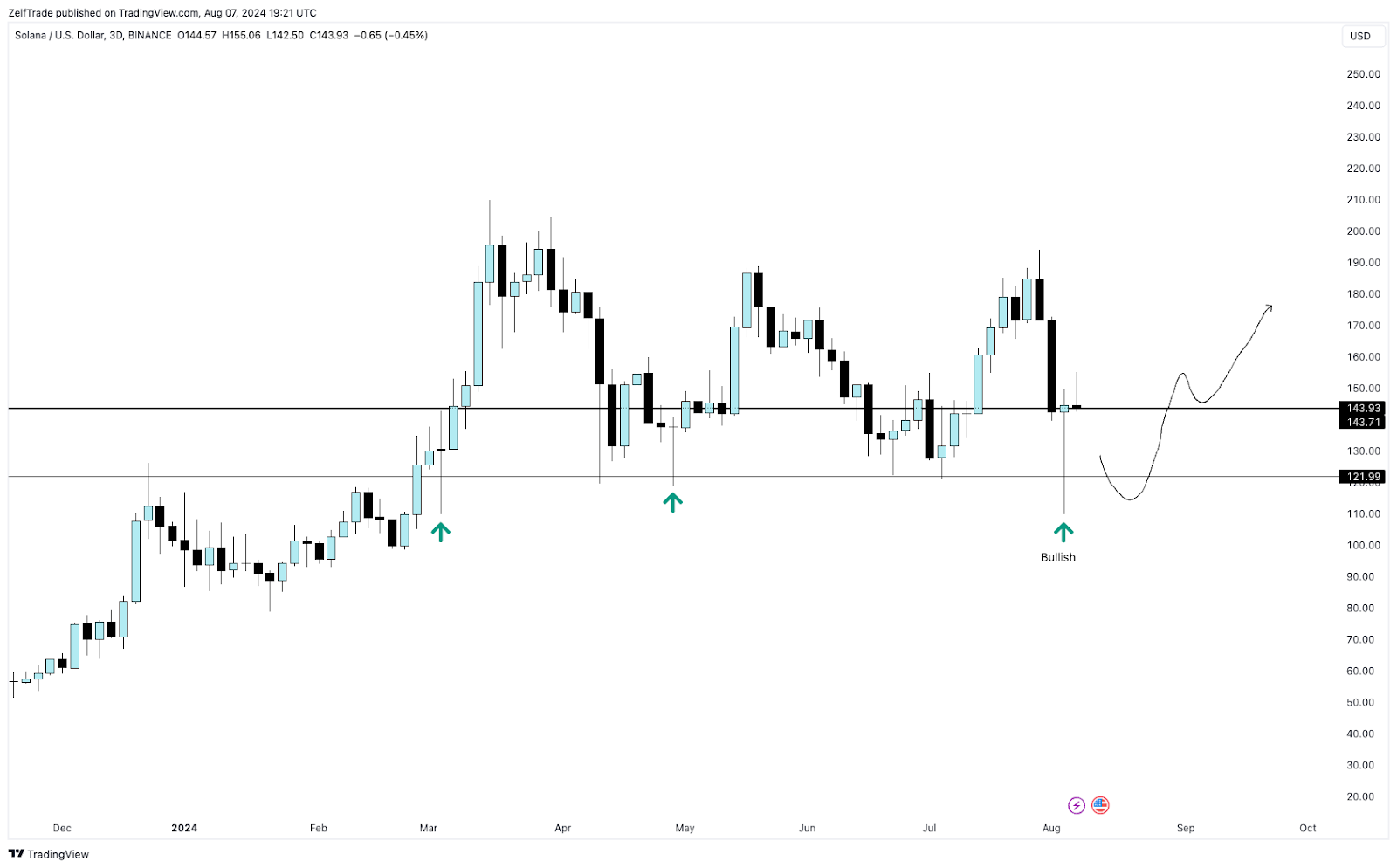 We had an extremely bullish hammer candle printed in the 3 day chart which only means one thing, bulls have defended that level. Not only that but we have already taken liquidity off previous lows now. Any retrace toward $120’s should be a buy. $110 must be defended at all costs, we do not want price sweeping this low.
