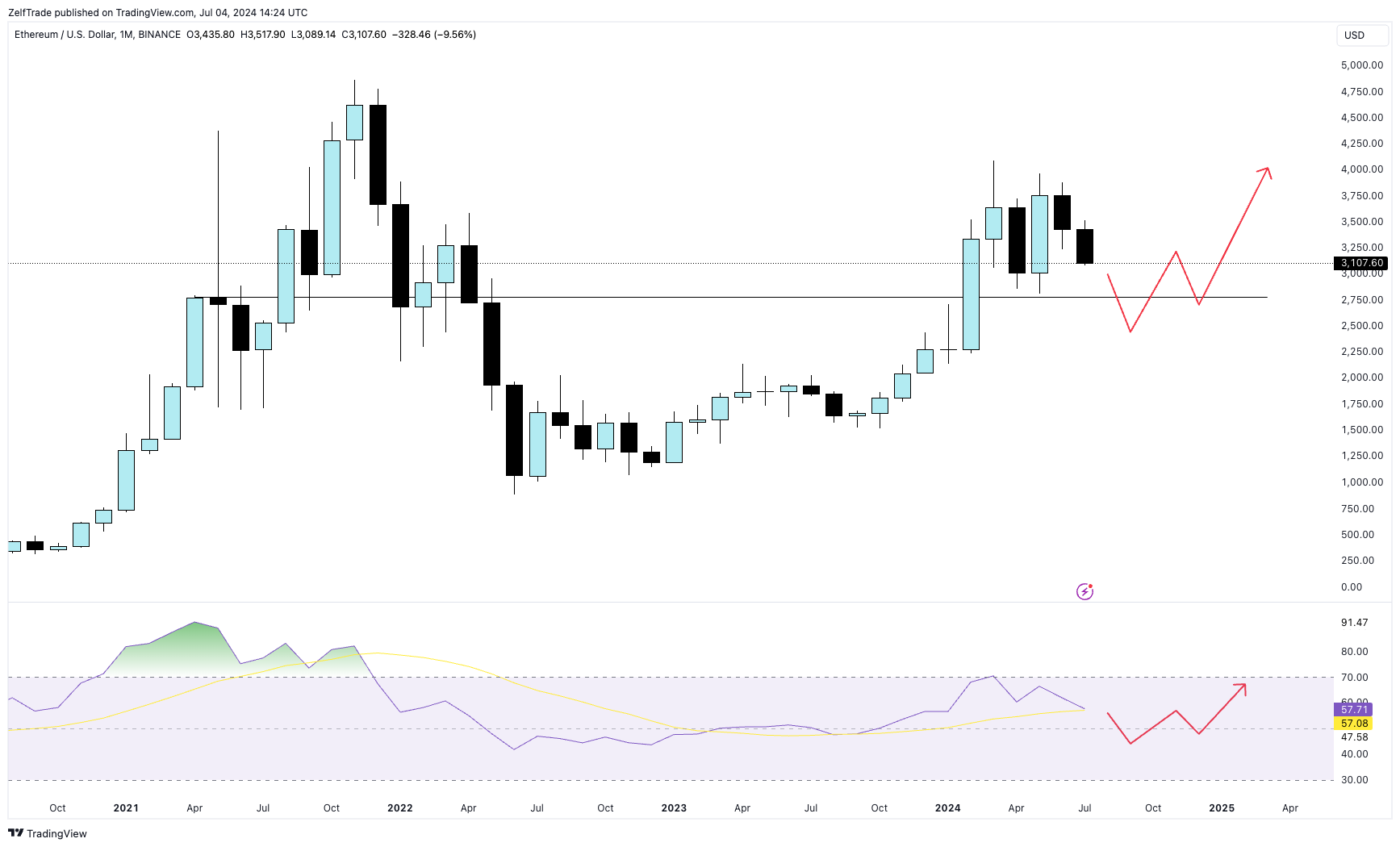- A sweep of the lows at $2,800 and 50RSI retrace is more than likely and price could go even lower and still be long term bullish so do not be amazed.