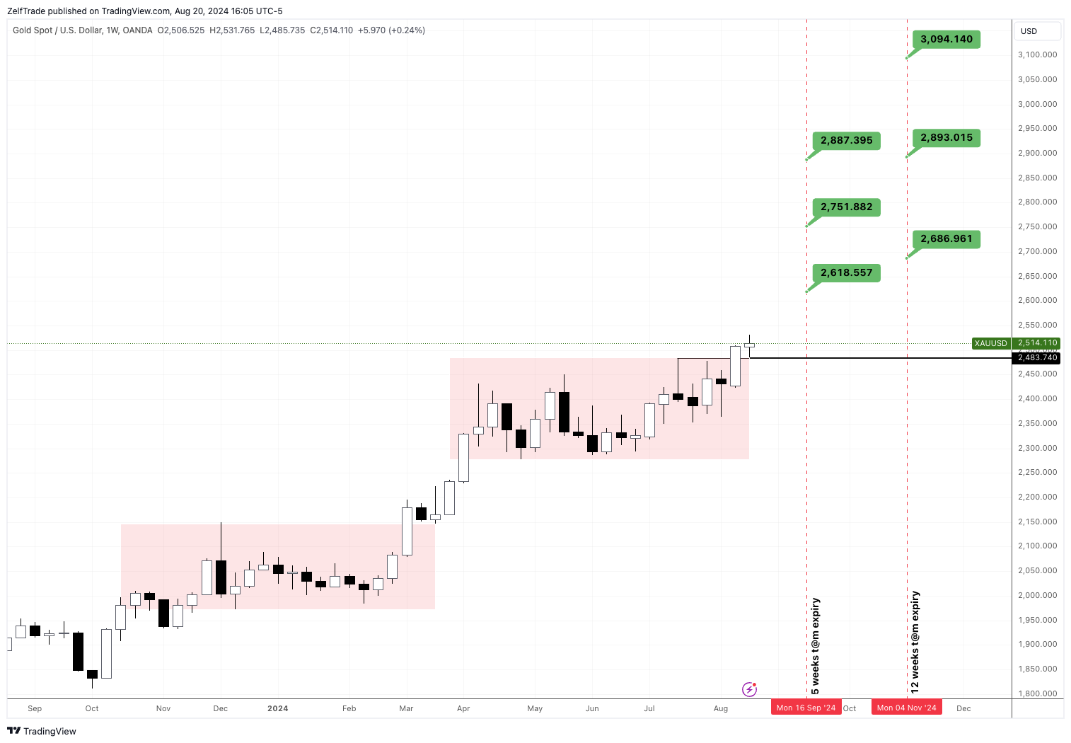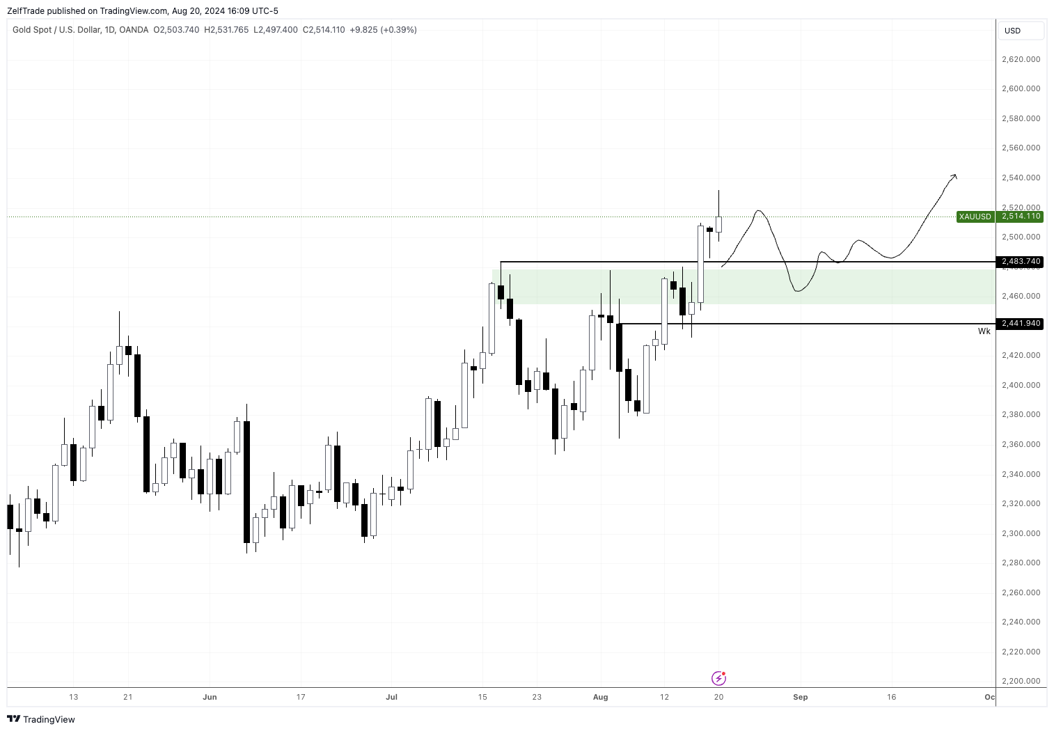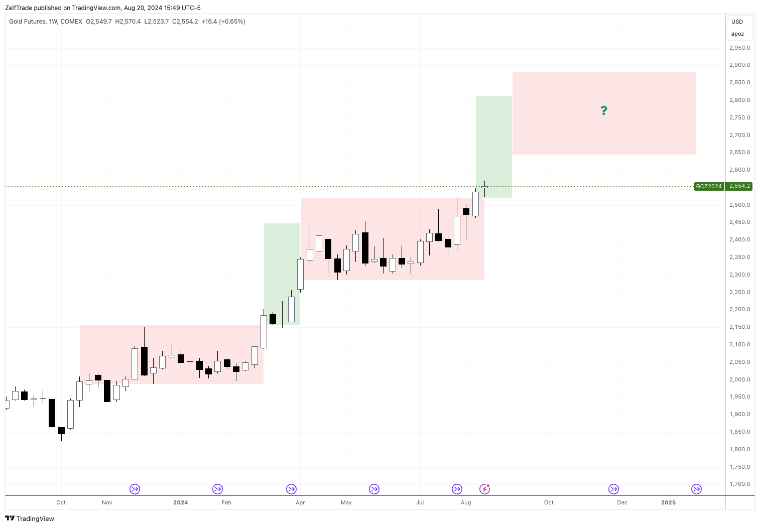 As mentioned in our last report, price needed to break above the highs of $2,484 for bullish momentum to continue. We have now broken above these highs with a bullish expansive bar on the weekly, 3 day and even the daily chart, too much confluence. Now what?