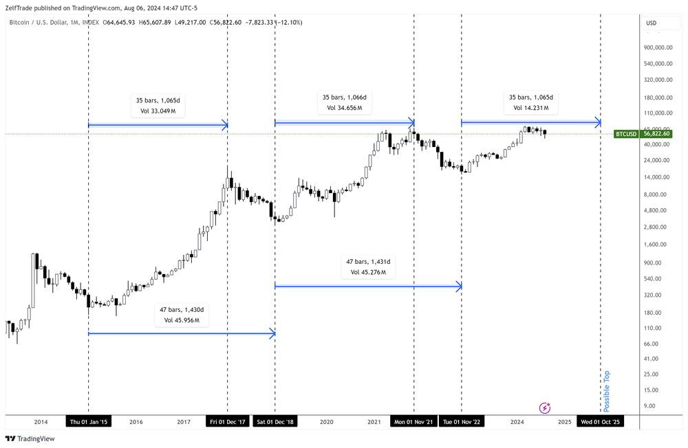 As for timing, one target aligns with the monthly chart, suggesting that July could be the top, which seems more reasonable than October's expiry. However, based on previous history and Bitcoin’s cycle fractals, October is typically when we see a peak. We’ll have to wait and see how far this “ponzi” will pump—whether it goes above 100k or drops back below 40k in a year.