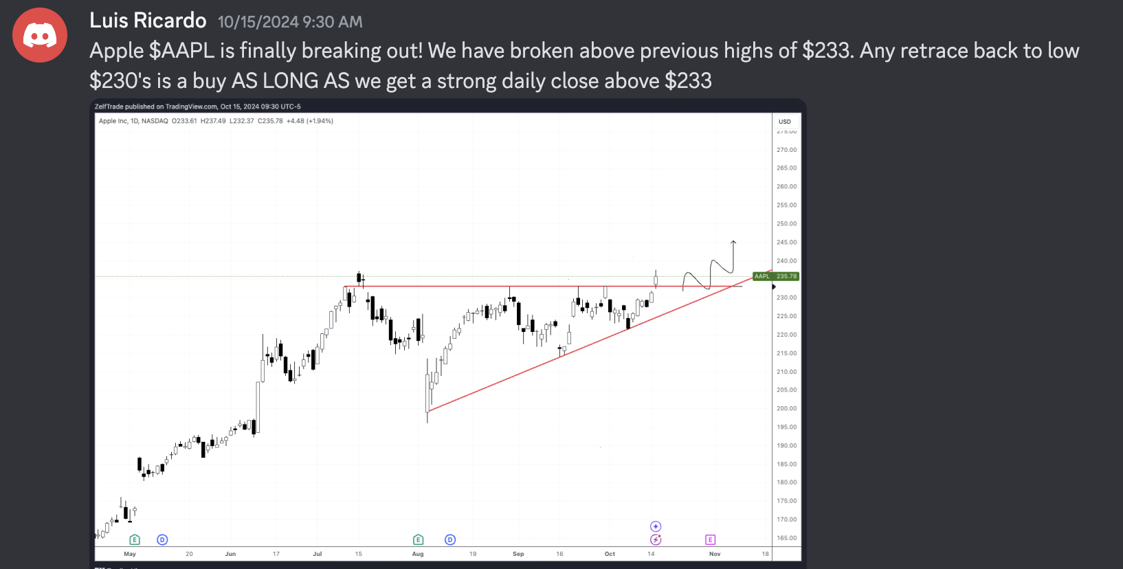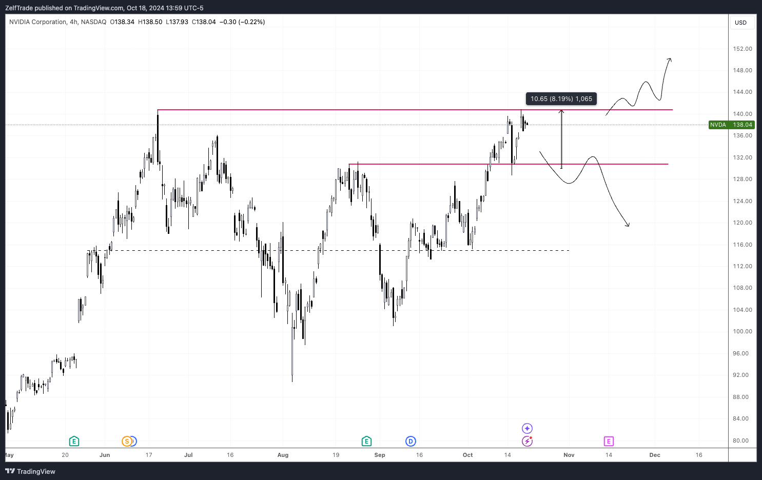 We now have an additional +8% profit from last week. Most profit has been taken at $140's and we are currently sitting at a no trade zone. We need to see a strong break above all time high for further upside.