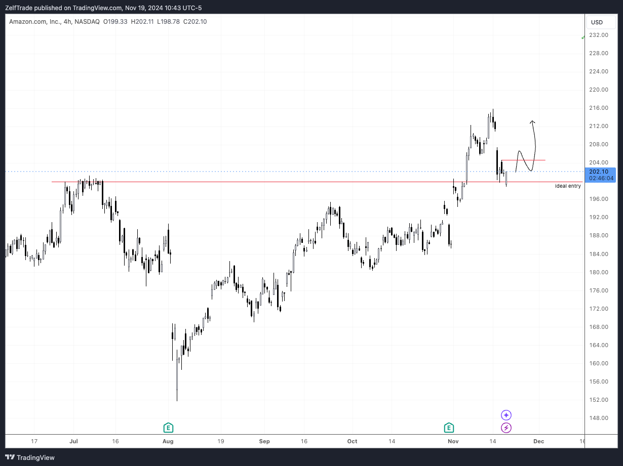We are now long as our entry point has been hit. Price has perfectly retraced to $200's level. Price now must show strength rather quick by making a at least a higher high on the 4-hour chart.
