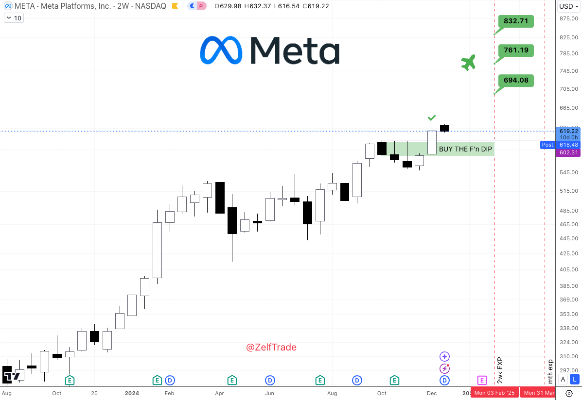 Meta Platforms $META too just confirmed another macro bullish trend. This is just insane. There is a 2 week Time at Mode confirmation with targets of $700, $760 and $830 by February 2025. Not only this but there's also an even higher timeframe Time at Mode bullish trend confirmed on the monthly chart which expires on April 2025. If we get the divine retrace of around $480's we BUY THE DIP and wouldn't hurt simply dollar cost averaging your way in as such a steep retrace could not even happen.