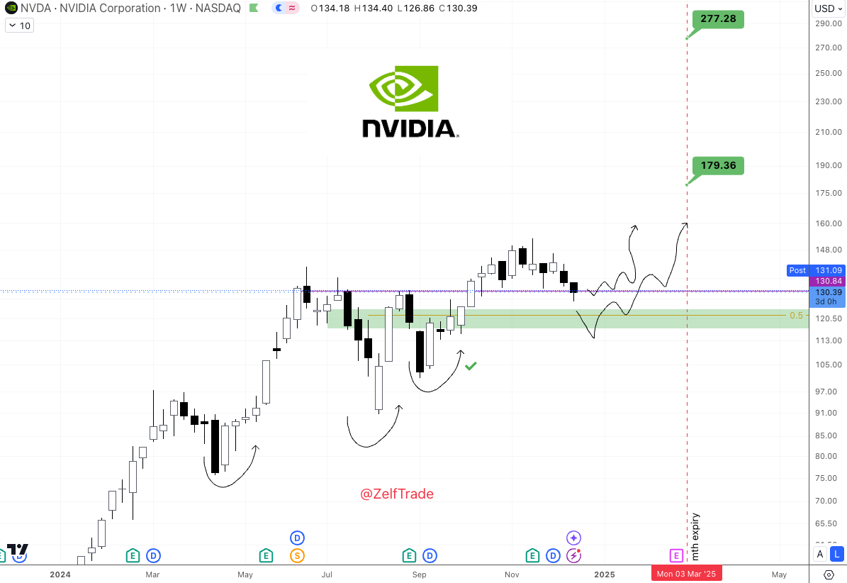 And finally we have Nvidia $NVDA which is the lagging 7th tech stock. After such a massive run over 2024 no wonder why it is stalling. People are simply taking profits and doing some capital rotation towards other stocks with more momentum behind.