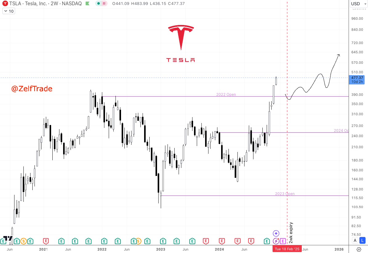 Tesla $TSLA certainly leading the way and giving no room for bystanders to jump in. Price just kept pumping and keeps making new all time highs by the minute. There is an active bullish trend set to expire mid February so we expect price to keep on surging. This stock will go over $1,000 + per share that's for sure so no need to OVER TRADE. The new ideal entry just became $390's IF we get that retrace but there is NO SIGNS OF WEAKNESS at the moment.