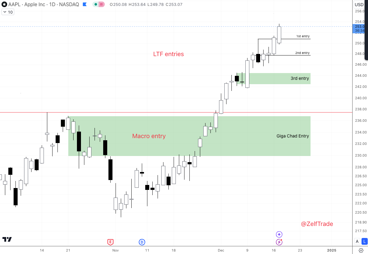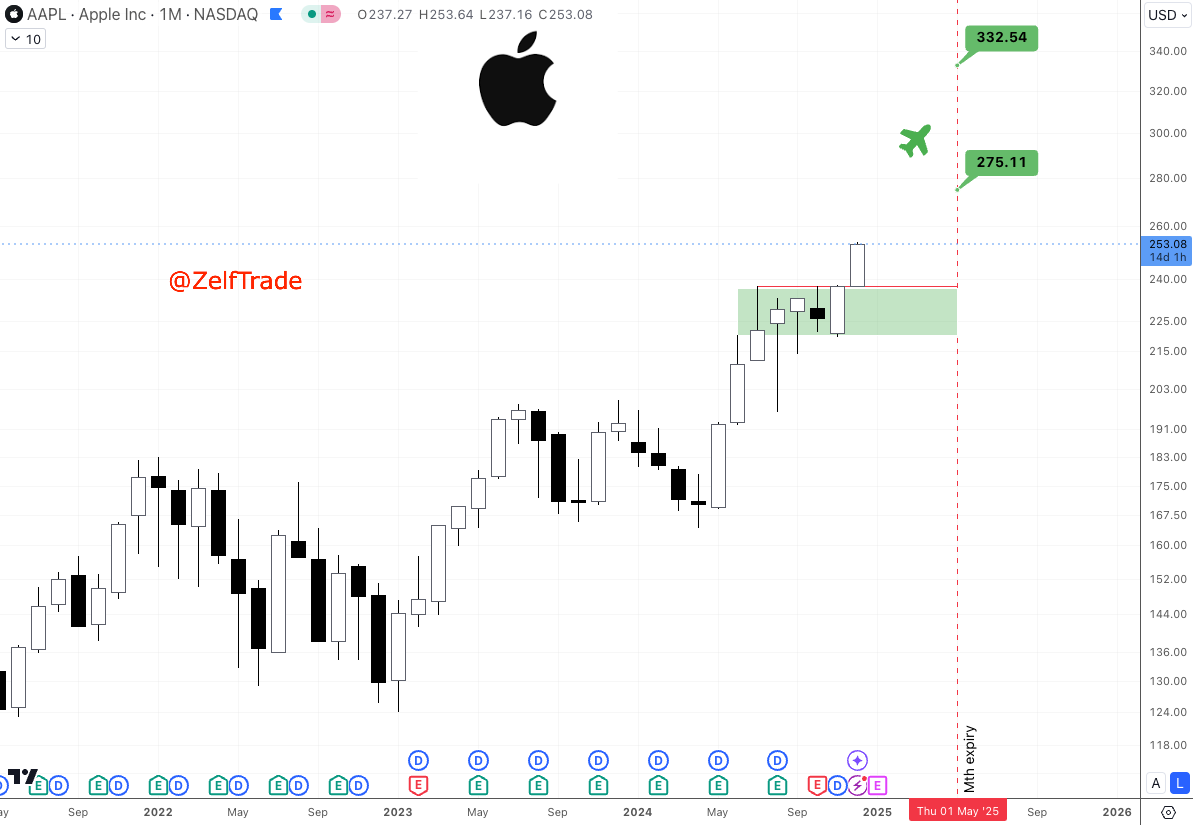 Apple $AAPL is about to confirm a MACRO BULLISH trend on the monthly timeframe. Upon December's monthly close, which already looks extremely bullish, will confirm this macro Bullish Time at Mode trend with first two targets of $275 and $332 by May 2025. As of right now there is no sign of weakness but bellow are ideal entries in case we do get a LTF retrace.