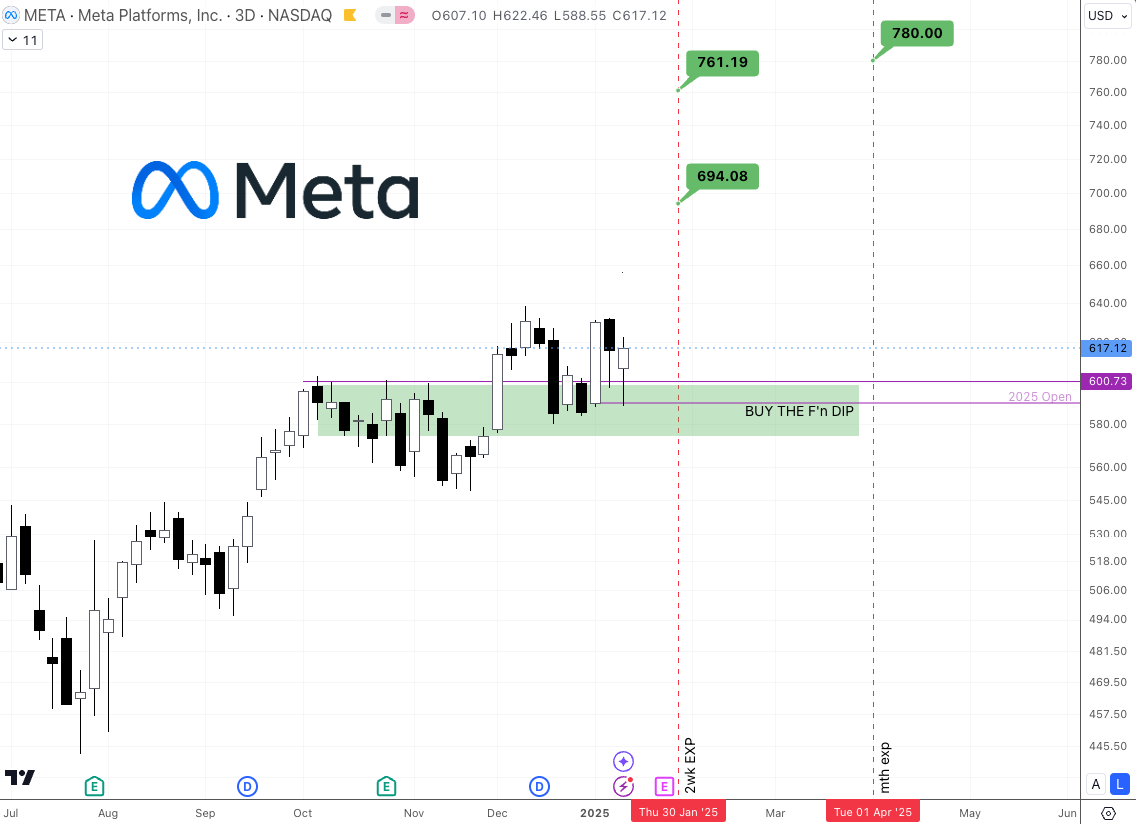 Facebook $META so far so good. We are long here here but price must break above previous highs if we want further upside.