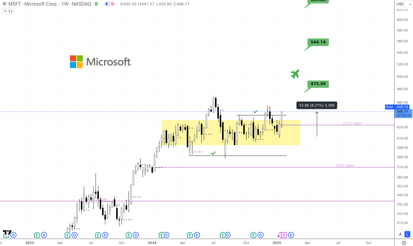 Microsoft $MSFT is ON THE MOVE! weekly chart looks quite strong as price just nuked from our buy zone we've been calling for a while now. We need price continuation towards new highs. Time to sit back and relax...