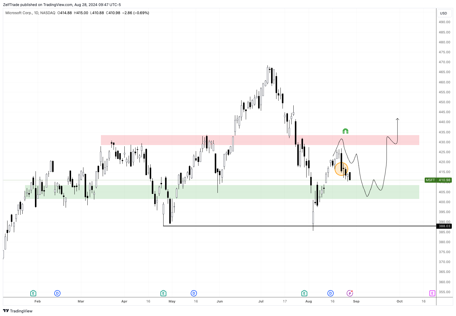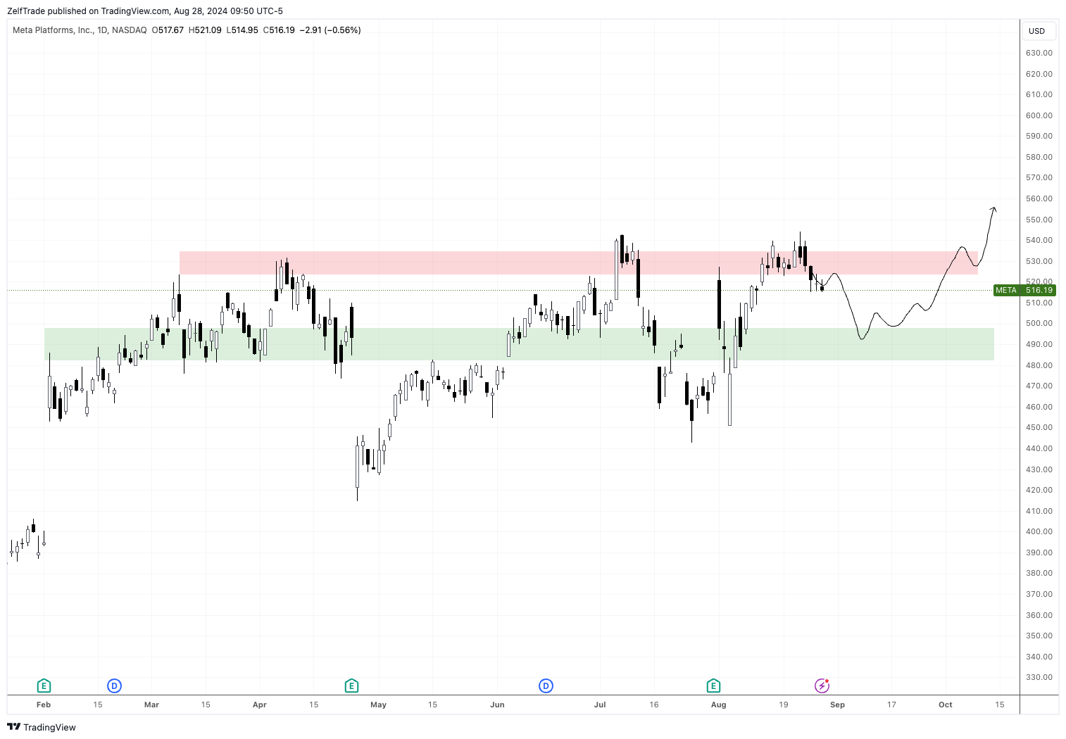 Similar to Microsoft’s price action, here we also broke lows and currently on its way to a bigger retrace. Ideal long re-entries should stand at around $490’s.