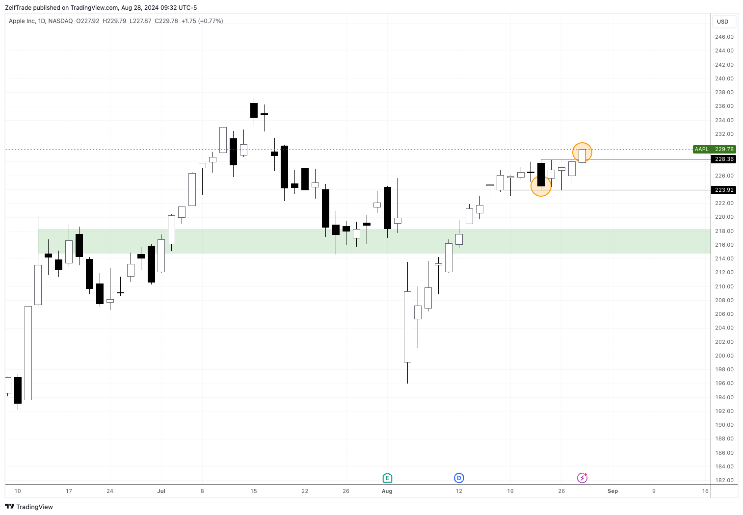 Ideally we want a daily close today above $229 for further bullish continuation but so far looking quite good. A small market buy might be worth it.Â