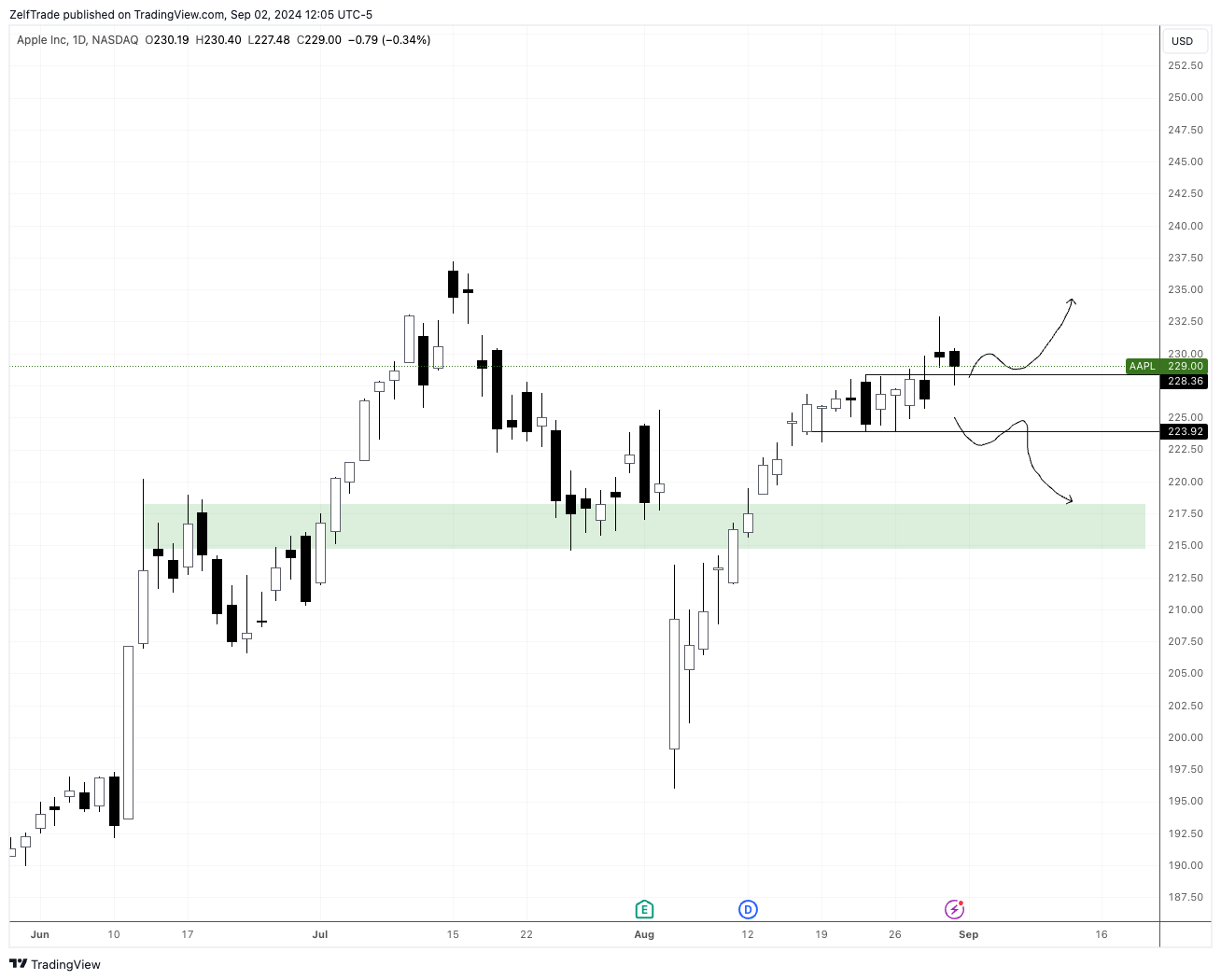 Awaiting the new Iphone 16 set to be released this month this stock is likely to continue its bullish run short term. As previously mentioned, price was at a key level and needed to break either side. It started to break bullish now. Price needs to stay above $228 for further bullish momentum to continue.Â