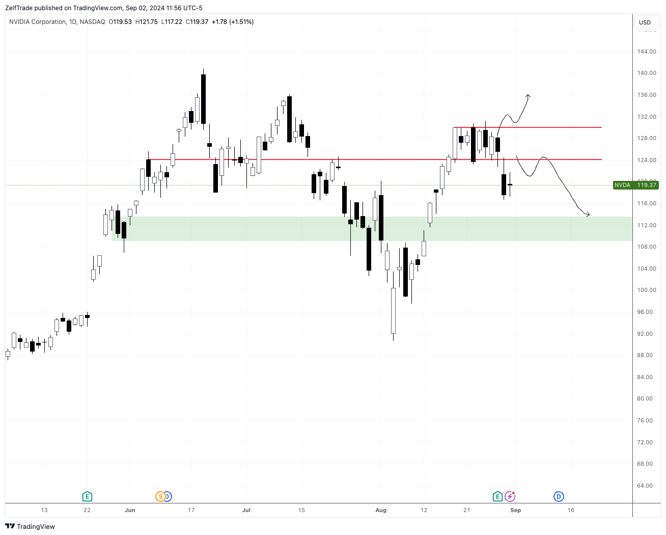 Mid-week update Nvidia (NVDA) - neutral Nvidia releases its Q2 2024 earnings report today and everybody’s eyes on here. Most stocks will move depending on today’s earnings report so be careful. Price action wise we are at key level. We break above for bullish continuation or break below for further