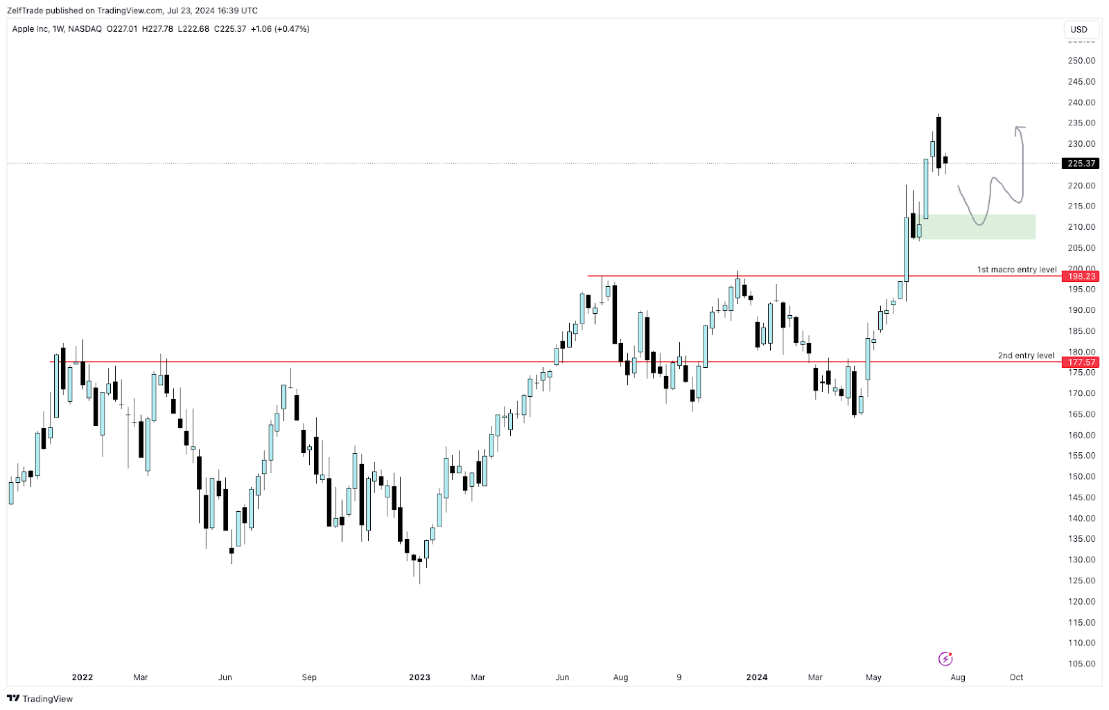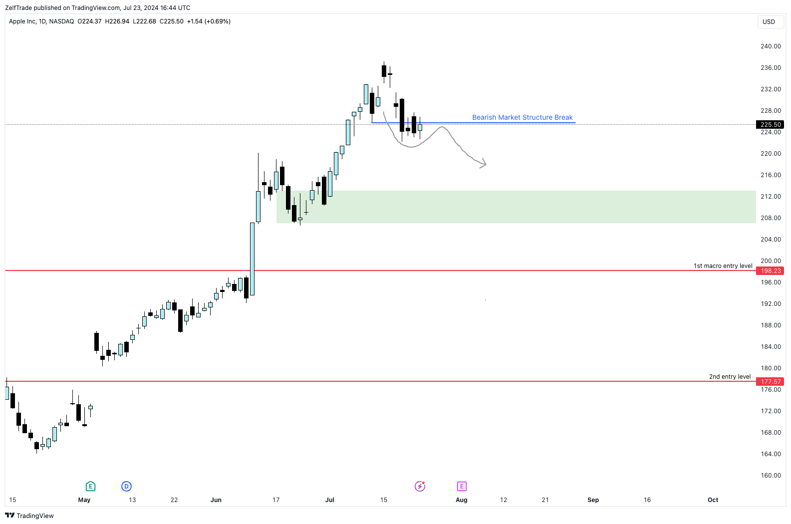 - If we break below $222 a bigger retrace might be in play towards $215 - $210 at first.