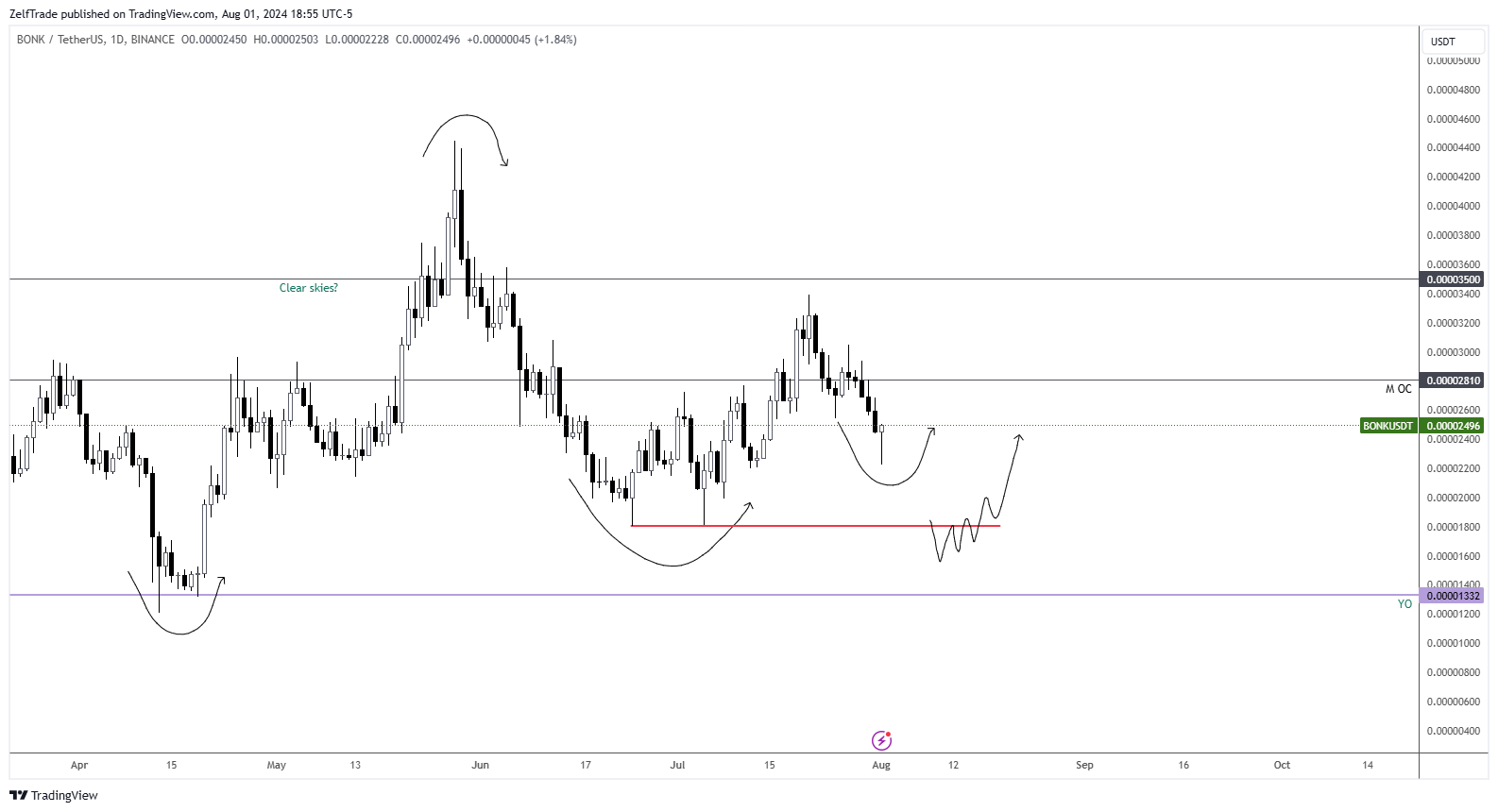- If this consolidation is bullish, $0.000020 - $0.000022 is the level to hold. No interest below that area.Â