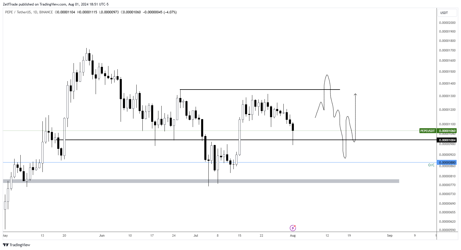 - Lost the initial momentum towards the high of the previous bearish move. A sign of weakness and caution should be taken at the support levels of $0.000010 - $0.0000088.