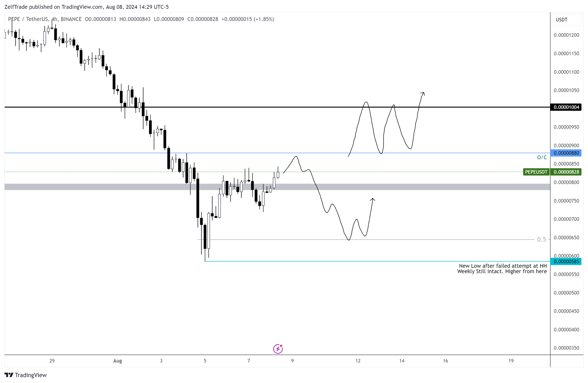 Not much to update. It failed to make a higher low and went straight down towards the equal lows at $0.000018. This move was anticipated in the previous post as liquidity was below the much anticipated higher low which was quickly erased.