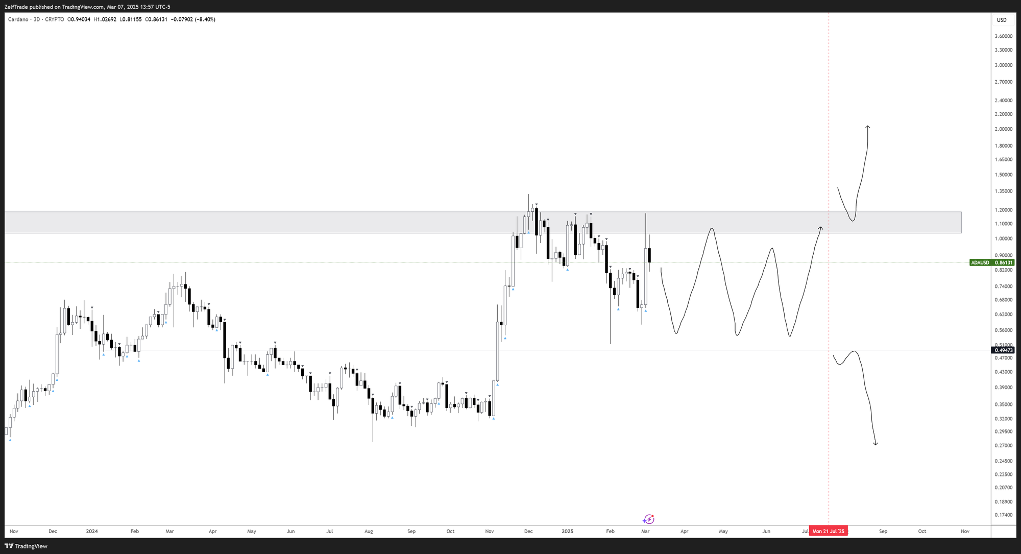 🔹 Chart Structure → Only one price zone separates ADA from a potential breakout.