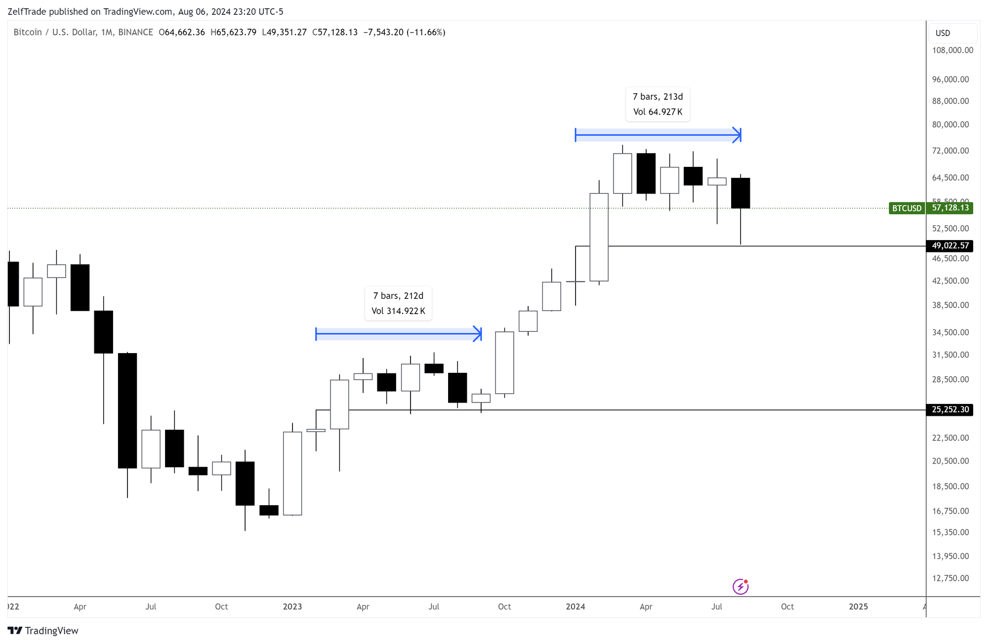 - First, the '23 consolidation lasted 7 months before the massive expansion candle.