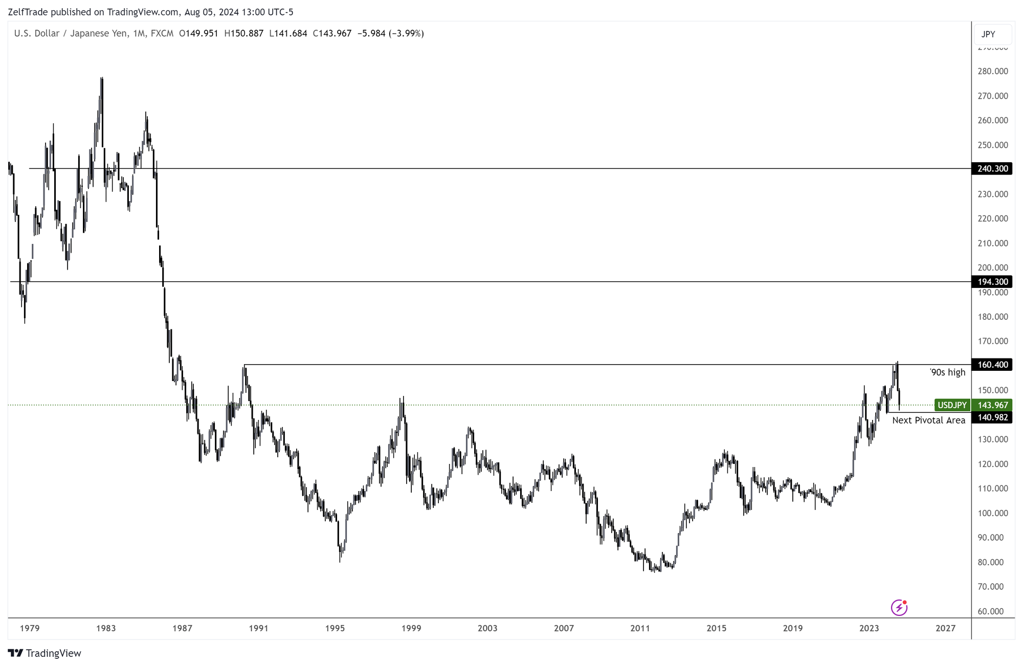 Context is everything, you have to respect how the market moves before looking at each S/D zone. One question to ask is, who is in control? As in Bitcoin for example, where the bears maintain their stance protecting each weekly block by rejecting each test. Same goes for USDJPY after failing to gain momentum against the high 90's, last imminent high before a free ascent towards the next cluster zone 193-240. Different pivotal points, but equally important for the bears to protect those zones.Â